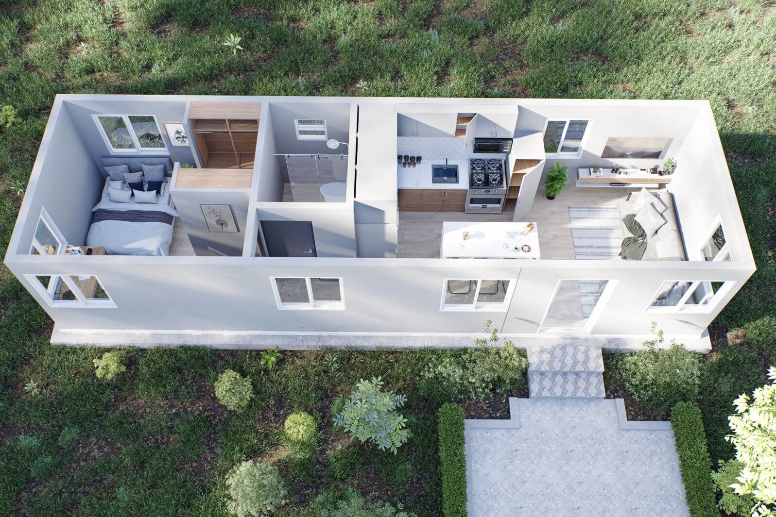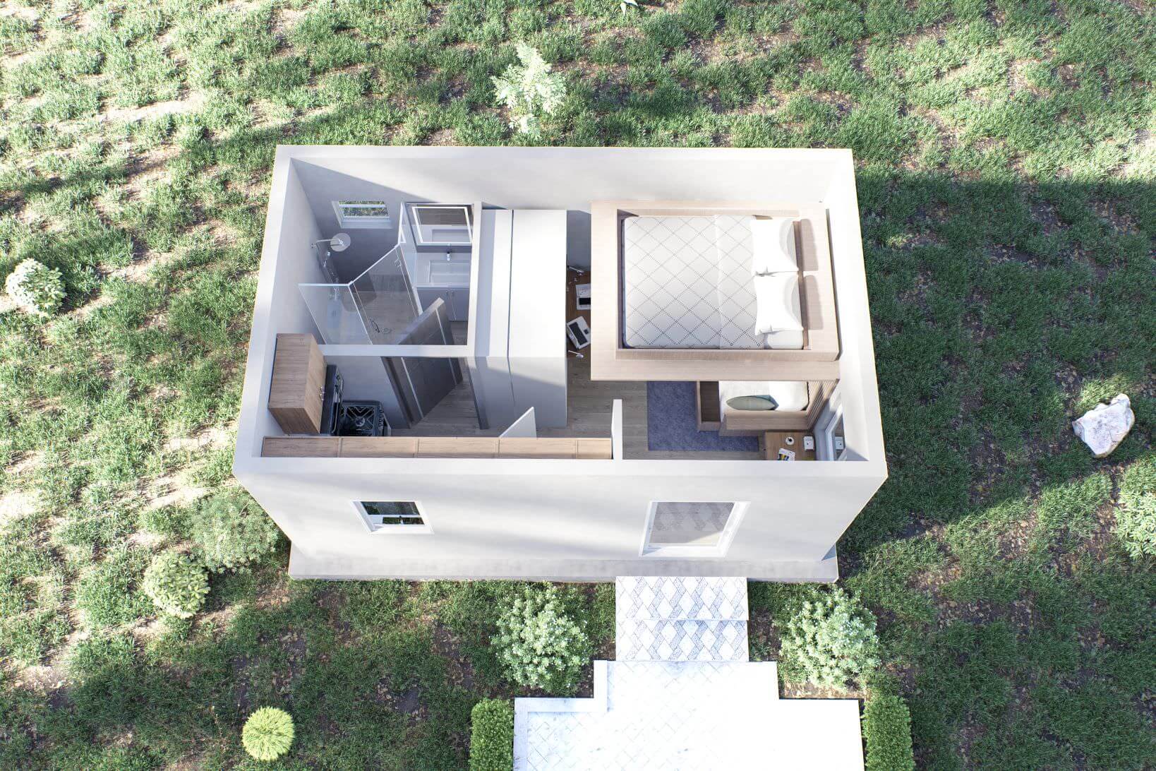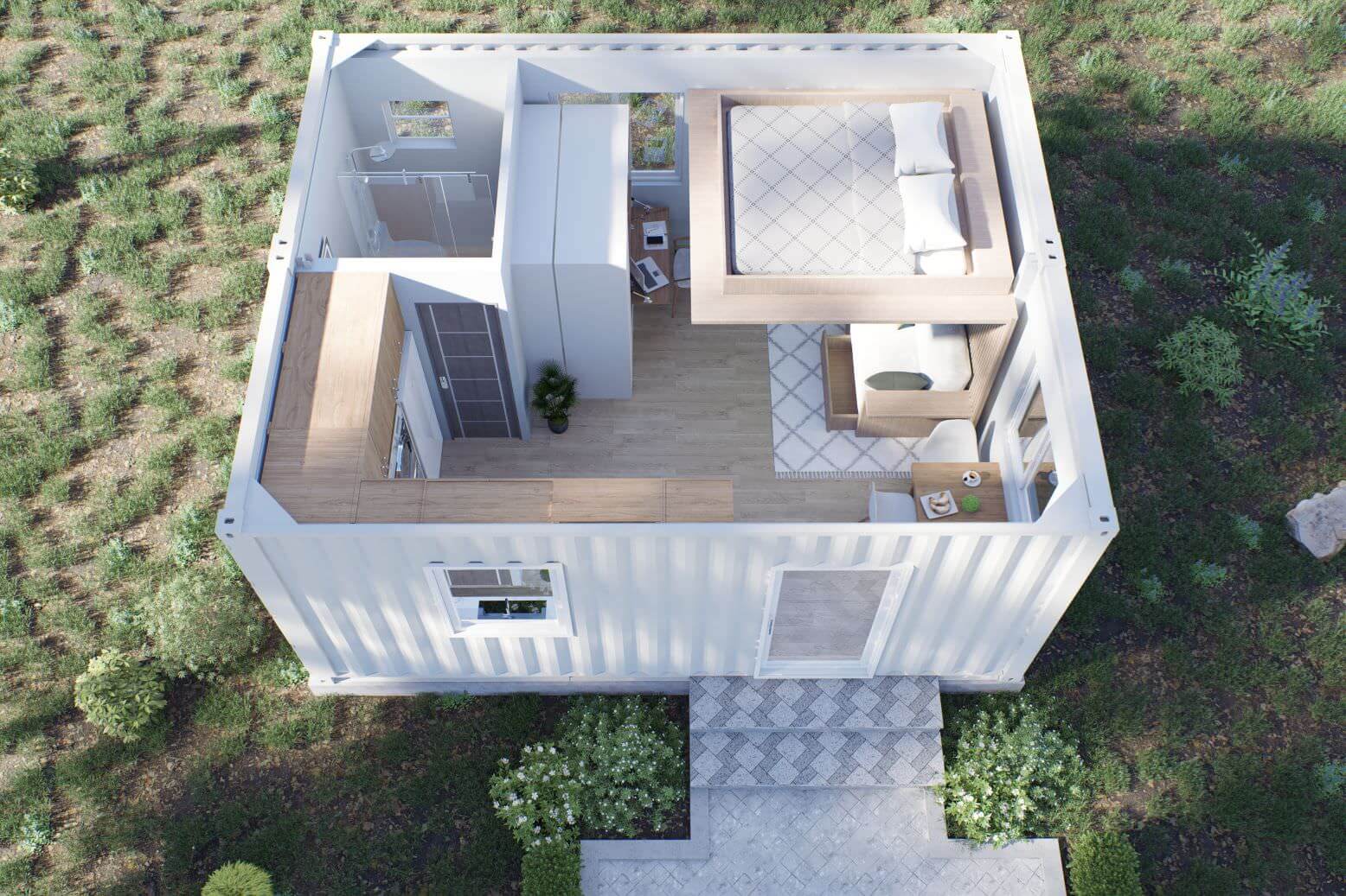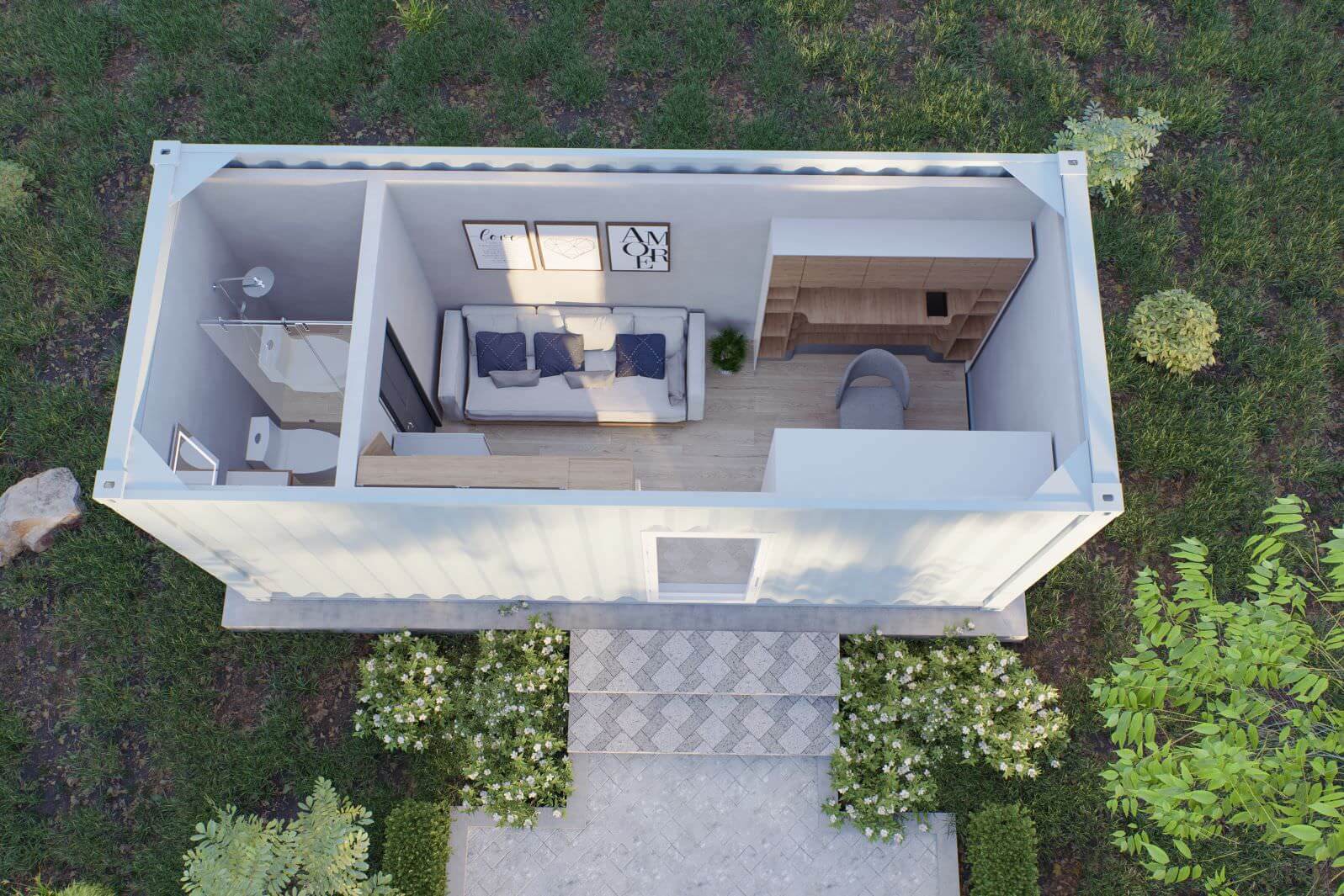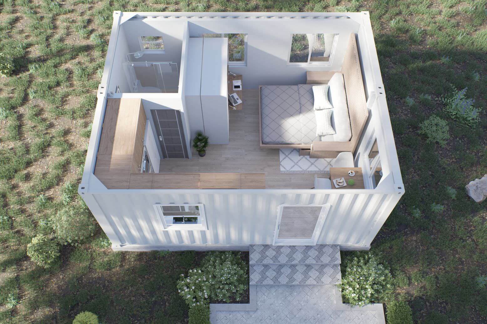 Our economy model utilizes a single 40ft container to bring a single bedroom unit that is truly balanced and spacious.