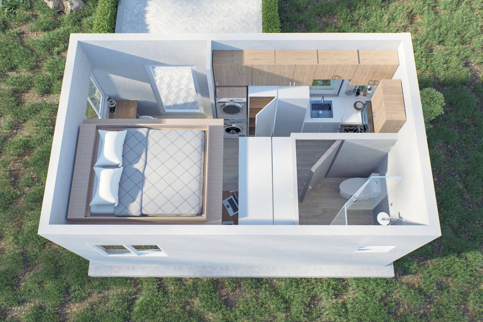 Shipping container homes have one very appealing and unique feature that standard construction homes don’t have – they can be easily transported anywhere you want to go so you can take your home with you anywhere you move in the world! They have a smaller footprint than other types of construction and can be configured in many ways or stacked on top of each other which makes scaling your housing project easy and efficient.